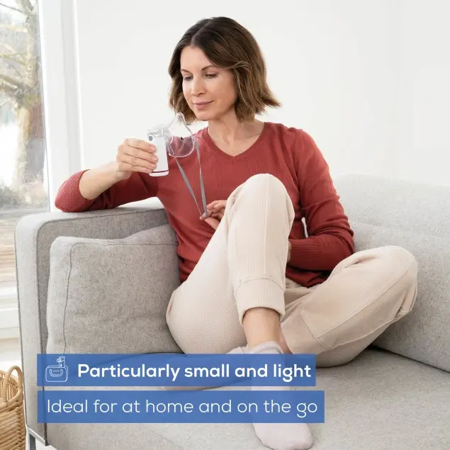 The Beurer IH 51 Nebuliser offers fast and efficient inhalation – ideal for use at home or on the move. It is particularly suitable for treating colds, asthma and other respiratory diseases. The device is particularly handy and quiet and can be used by adults and children alike.