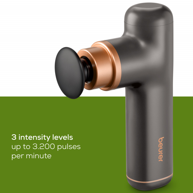 It has three intensity levels ranging from 1,700 rpm to 3,200 rpm. These can be adapted to suit the user, and mean that even sensitive or ticklish people can enjoy gentle trigger-point massage.