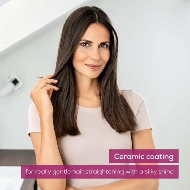 The HS 15 enables particularly fast and gentle hair straightening. The ceramic coating protects the hair during styling. The quick-heating function allows the hair straightener to be used immediately.