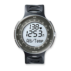 The heart rate monitor is the perfect companion for all outdoor activities. Whether it's during mountaineering, hiking or Nordic walking, the heart rate monitor displays your current altitude, metres in altitude climbed and number of descents. It is also waterproof to 50 m and is therefore also suitable for swimming.